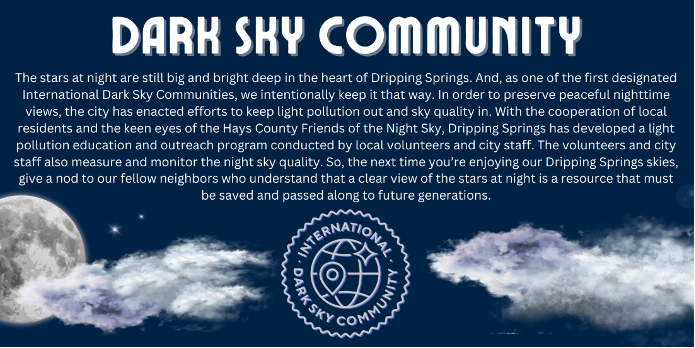 https://darksky.org/ & https://www.cityofdrippingsprings.com/site-home/news/city-launches-lights-out-dripping-springs