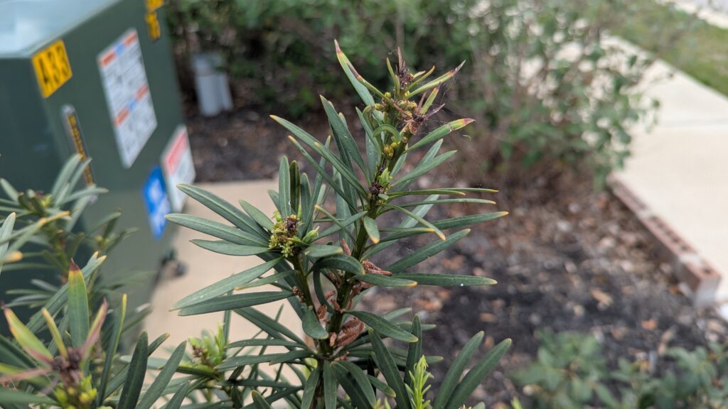 - Poor or stunted leaf or needle development